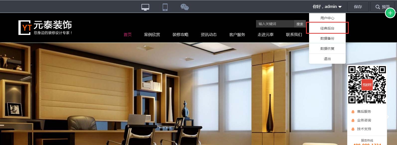进入经典后台管理界面后,点击左侧的“
