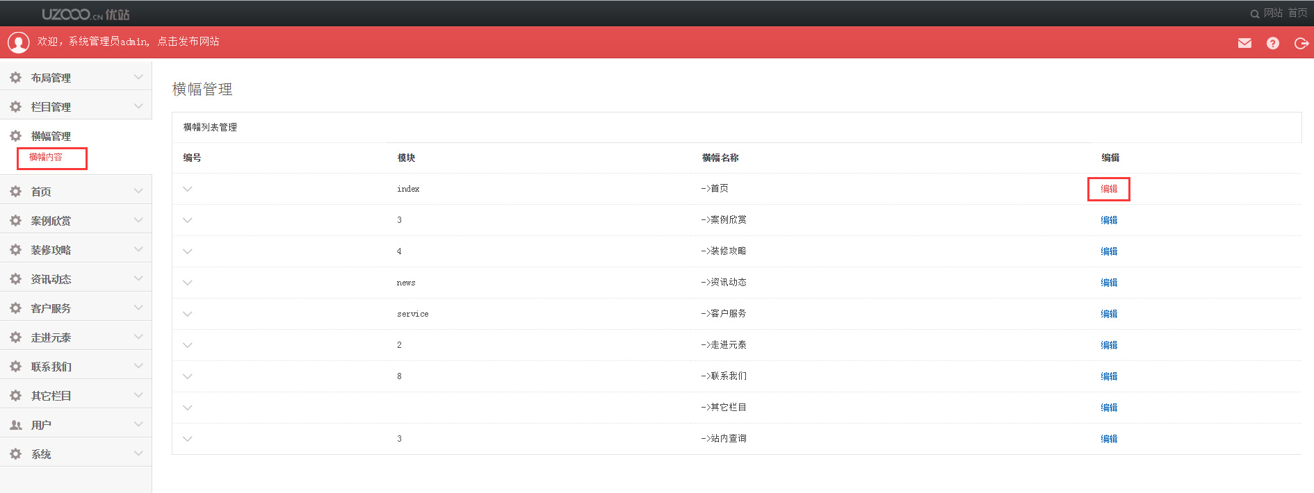 进入横幅编辑页面,点击“