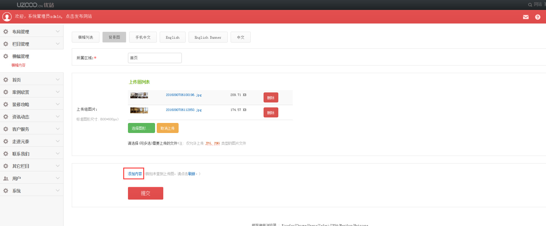 ”即完成首页横幅图的链接(见下图)。
